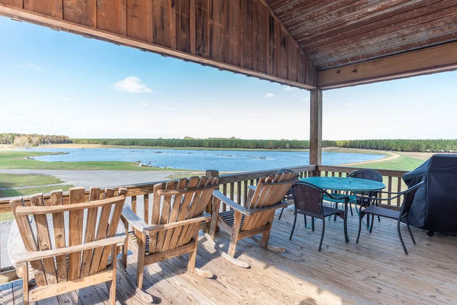 The guest house sits atop of a large cypress barn. It was finished in January 2017 and has 3 Bedrooms/1 Bath, real wood floors, 9 ceilings, solid wood doors, and vaulted tongue and groove cypress ceilings in the living room/kitchen. It is well-insulated and has a gas tankless water heater. The elevated porch measures 15 x 25 and is a fantastic place to entertain, cook and look out over the lake and surrounding area. Propane is hard lined to the porch for your grill from a 1000 gallon tank. The view from this porch out over the lake and land is so serene and just awesome.