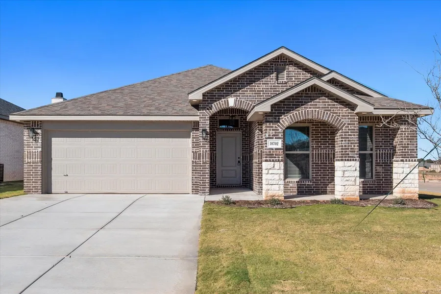 Seller has already reduced the price by $40,150, giving buyers instant equity and unmatched value. Buy NOW and get up to $10,000 Use-It-Your-Way Cash! This stunning home features a brick exterior with stone accents and a covered front entryway. Inside, luxury vinyl plank flooring flows through the open-concept kitchen, living, and dining areas. The kitchen offers granite or quartz countertops, a spacious island with bar seating, stainless steel appliances, and a large enclosed pantry. The living room is highlighted by a cozy corner brick fireplace. The secluded master suite includes a drop-in tub, walk-in shower, his and hers vanities, and a walk-in closet. A covered back patio provides an incredible outdoor space. Premium plumbing and lighting fixtures complete this beautiful home.