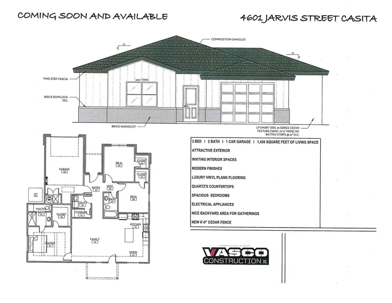 Welcome to 4601 Jarvis St., a beautifully built new construction home offering 1,430 sq. ft. of thoughtfully designed living space. This three-bedroom, two-bath property features an attractive exterior and a warm, inviting interior with modern finishes throughout. Enjoy luxury vinyl plank flooring, quartz countertops, and spacious bedrooms. The kitchen includes sleek electrical appliances and ample workspace. Step outside to a pleasant backyard with a new six-foot cedar fence, perfect for gatherings or relaxing evenings. A one-car garage completes this charming and move-in-ready home. Minutes away from Texas Tech University,hospitals, Restaurants, Grocery store and easy access to loop 289.