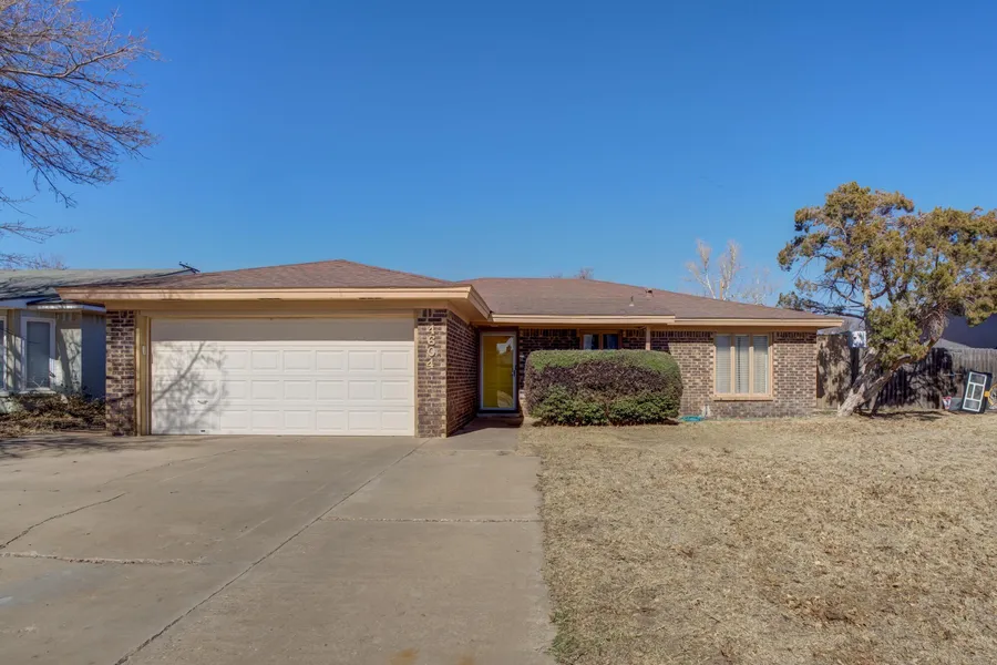 Adorable, updated, and move-in ready 3 bedroom, 2 bath, 2 car garage home waiting for its new owner! Situated in a fantastic location close to everything in Lubbock, this home truly has it all. The front-facing kitchen welcomes you with beautiful countertops, tile backsplash, and an open layout that flows seamlessly into the main living space. The spacious living room features vinyl plank flooring, a striking cathedral beamed ceiling, and a freshly painted fireplace that creates a warm, inviting focal point. The primary suite is generously sized with his-and-hers closets and a convenient desk nook perfect for working from home or a cozy reading space. Fresh paint throughout and no popcorn ceilings give the home a clean, modern feel. Two additional bedrooms share a beautifully updated bathroom featuring granite countertops and classic subway tile finishes. Step outside to a peaceful backyard retreat full of possibilities. The covered patio with bar-top seating is ideal for entertaining, family cookouts, or relaxing evenings. And don't miss the stunning planter boxes that add charm and character to the outdoor space. This one checks all the boxes. Welcome home!