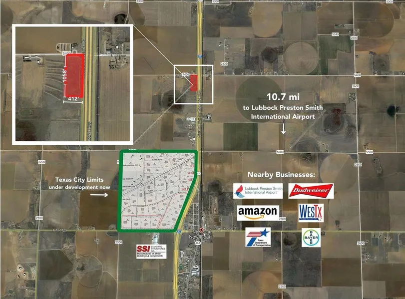 This 10 acre tract located just north of New Deal is available for sale with approximately 1,058 sq ft of I-27 frontage and a depth of approx 412 ft. This land is located just a mile north of the Texas City Limits Industrial Park and the city of New Deal.