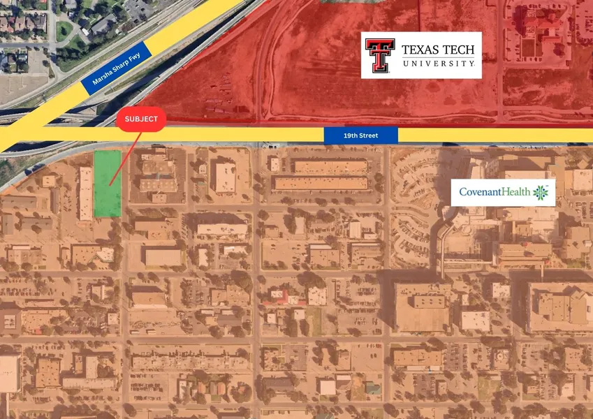 1.028- acre tract of land suitable for multiple medical office, professional office, and/or retail development in the heart of Lubbock's medical district. With frontage on 19th Street and visibility from Marsha Sharp Freeway, this tract affords exposure to users and is ready for immediate development.
