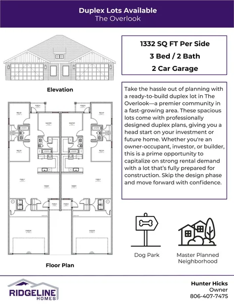 Transform your construction experience into a breeze with our customizable duplexes in The Overlook, where you can effortlessly invest in a spacious lot and enjoy a high-quality home tailored just for you, all while capitalizing on the booming rental market! Whether you're an owner-occupant or investor, we can Build-to-Suit!!!