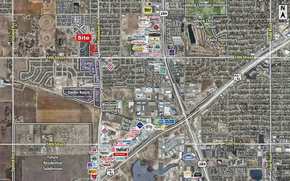 A Large development tract available in growing west Lubbock. This tract is conveniently 1-mile west of West End Shopping Center, 1-mile west of Loop 289, and sits on the north end of the Milwaukee Corridor, including the new 800,000 square foot mixed-use retail center Canyon West. Texas Tech University, University Medical Center, & Covenant Health Systems are only a 10-minute drive away. Property is not in the floodplain.