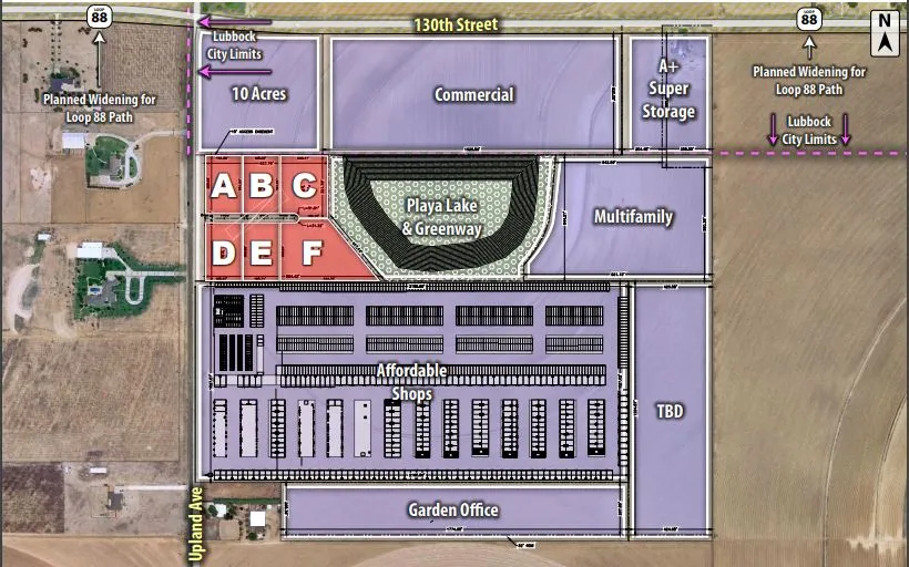 A new mixed-use development in southwest Lubbock. Consisting of commercial and residential with Loop 88 frontage. Featuring a planned greenway development. Properties will be built up out of the floodplain.