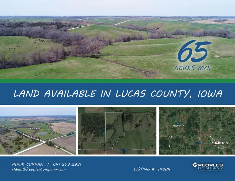 Presenting 65 acres m/l of pasture farmland with a CSR2 rating of 26.6. The farm is located just northeast of Lucas, Iowa and in Section 6 of Whitebreast Township. Primary soil types include Gara clay loam, Zook-Olmitz-Vesser complex and Armstrong clay loam. The fence has been properly maintained and the pasture acres have been well managed and properly stocked to continue to run livestock. There is rural water on the property but the creek is capable of holding water year around. The corral is in good shape and features a piped alleyway and holding areas designed for easy flow. The heavily timbered draws not only will offer shade for your livestock, but it's also a frequent travel area for deer and turkey giving the farm great hunting potential. Plus, with rural water already on the property and electric at the road along with the beautiful landscape of Lucas County, this farm would be a perfect spot to build your dream home. Any and all leases have been terminated and are open for the 2020 farming season.