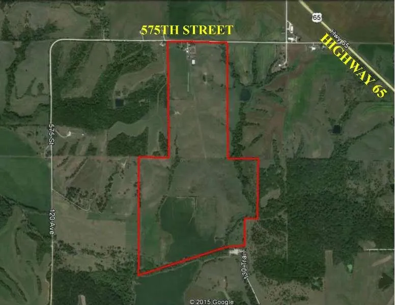 Research Parcel InformationFrom Lucas, IA at the corner of Highway 34 & Highway 65, Take Highway 65 north to 575th Street. Take 575th west one mile. The property is located on the south side of 575th St. Look for sign.