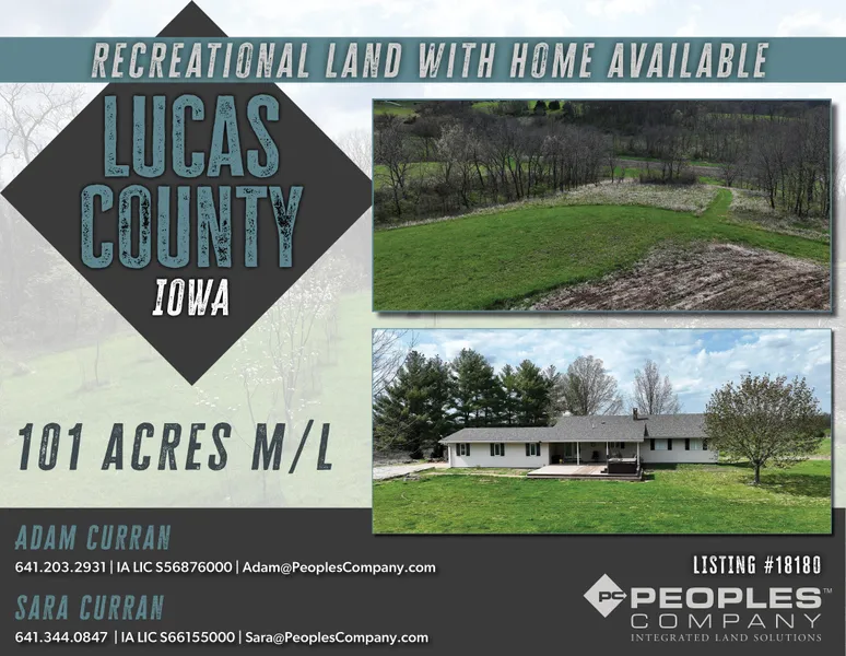 Located just east of Chariton, Iowa, this 101-acre M/L recreational paradise is a rare find for serious hunters and outdoor enthusiasts. Offering premier seclusion at the end of a dead-end road just 0.5 miles off pavement, this property is an ideal retreat while still being close to town. The diverse landscape is designed for outdoor adventure, featuring mature timber, multiple ponds, food plots, and an extensive trail system for easy access to hunting spots. Three orchards provide a natural food source for wildlife, enhancing the already impressive whitetail deer, turkey, and game bird population. This property is a turnkey hunting haven, with all hunting blinds included in the sale. Additionally, the hay ground provides extra income potential, making this both a prime recreational escape and a smart investment....
