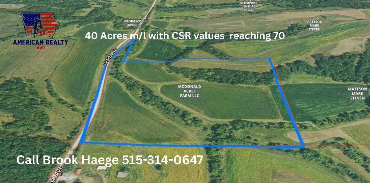 40 Acres M/L of prime farm ground just North of Chariton Iowa. There is an easement for access as well as access via the road. Average CSR for this land exceeds 70 for 29.36 acres making the per CSR PT right at 192! You cannot buy ground for this price and quality. Great for recreational use, farm ground or your next country home. Enjoy low taxes and ample land use. You are in close proximity to Stephens state forest lucas section as well for prime hunting.