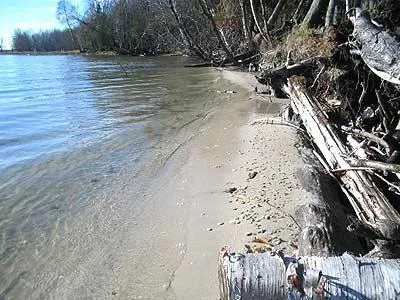 It is one of those beaches with the beautiful sand, fossils and small pebbles. This is where you kick off your shoes, wade into the warm water and watch your troubles disappear. Enjoy boating and trophy fishing on the 10,000 acre lake waiting for you at the end of your drive up north! A guaranteed buildable home site with Health Department approval is ready for your new lakefront home. New road offering year round access with electricity on site. $79,900