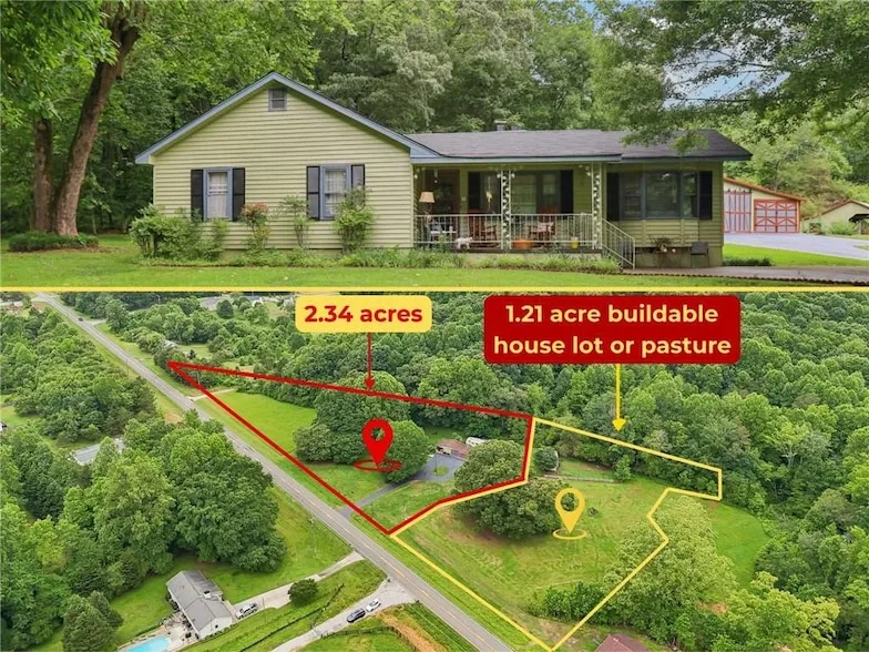 Welcome to your dream farmhouse retreat on 3.55 flat, usable acres. The home is on 2.34 acres and offers an additional buildable 1.21 parcel currently used as a pasture. The parcels are being sold together, offering added flexibility and long-term value. Whether you're seeking a family compound, a working farm, or simply room to spread out, this one-of-a-kind property offers endless potential. As an added bonus, a 2-bedroom, 1-bath RV with a kitchen/eating area is included, providing additional space for guests, extended family, or rental possibilities.This rustic gem blends timeless charm with thoughtful updates, preserving the original character from its 1945 construction. The farmhouse features three bedrooms, an updated bathroom with double sinks and a walk-in shower, and an open-concept layout with a dining area that flows into a spacious family room ideal for gatherings and everyday living. The laundry room has such charm! And the two walk-in pantries provide exceptional storage (cedar closet). Recent upgrades include a new roof (1 year old) and the addition of central air with new energy efficient unit. The interior and exterior of the home and the buildings been recently painted. All new appliances including the washer and dryer and refrigerator where purchased in 2023 and are included with the property. Outdoor living is exceptional and designed for all seasons. In the warmer months, enjoy gatherings on the back patio or under the covered outdoor dining area adjacent to the versatile two-car detached garage, which is currently used as a summer house for your enjoyment. In the winter, take in scenic mountain views from the charming front porch. The land is level and versatile, ideal for crops, gardens, or animals. A rustic barn with four stalls, fenced pasture and a 6800 sq ft repurposed poultry house enhance its farming potential.This property is full of rustic character and original charm, offering a rare opportunity to live in a peaceful countryside setting without sacrificing convenience. Located in the desirable Lumpkin County School District, the home is zoned for highly rated schools and is surrounded by the natural beauty and recreational opportunities that make North Georgia so special. You re just minutes from farm supply stores, historic gold mines, and outdoor destinations including Desoto Falls and the Appalachian Trail. Wine lovers will enjoy easy access to several nearby wineries, including Montaluce Winery & Restaurant, Kaya Vineyard and Winery, and Wolf Mountain Vineyards. The area is also close to the charming historic town of Dahlonega, known for its seasonal festivals, local boutiques, and vibrant dining scene. Lake Lanier is also accessible for boating, swimming and fishing.