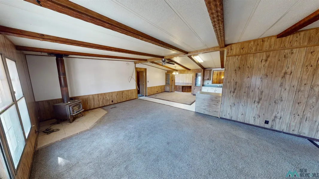 This spacious double-wide Celtic manufactured home (52x28) is considered real property and has been on its current site, built in 1981, approximately 2240 SQFT as per the Luna assessors. Offering a split floor plan, the home features 3 bedrooms, 1 full bathroom, and 1 3/4 bathroom. The inviting living room includes a wood-burning stove and flows into the dining area and kitchen with lots of cabinetry. The primary suite has a large walk-in closet and a private bathroom with dual sinks and a walk-in shower. The additional two bedrooms are carpeted and generously sized. The home also includes two additions: one currently used as a family room and office with access to the side patio, and another serving as a laundry room with extra space for a pantry or storage. Comfort is ensured with central refrigerated air and central heating. Situated on approximately 4 acres, the property is equipped ...