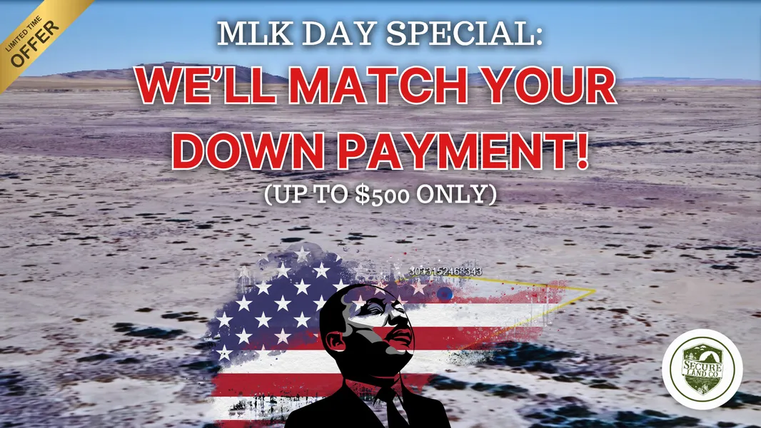 Honor Martin Luther King Jr.'s legacy with new opportunities! Own land today with up to $500 MATCHED on your down payment. Your future starts here!