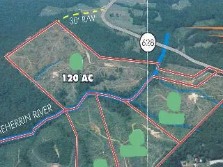Great investment, hunting or recreation. Property runs along N. Meherrin River. Will be replanted Jan./ Feb. Property has road frontage plu 30' R/W on Rt. 628 Approximately 30 acres of fertile river bottom land. Great building sites.