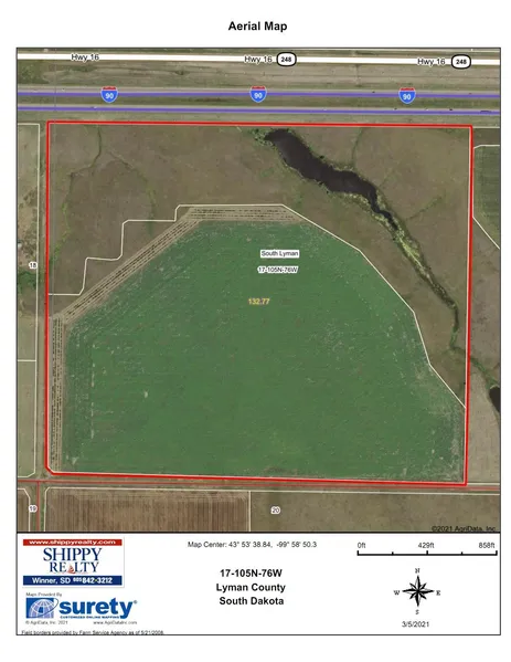 132.77 acres of excellent hunting land; 77 acres of crop; rest pasture with a dam; 5.55 acres in CRP coming out in 9/30/2025 (SW1/4 -27.23A H-1 & RD of 17-105-76)