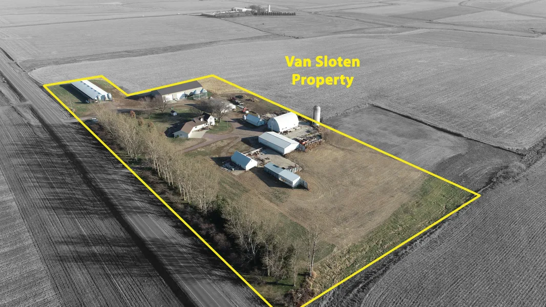 Auctioneers Note: We are honored to offer this high quality highly sought after acreage for the late Gary Van Sloten & Barb Van Sloten! This acreage is one of a kind and it is not often that you have an opportunity to purchase a income producing acreage as nice as this!! This acreage features a 1 1/2 story home with double attached garage, 60 x 112 machine shed, 1000 head hog finisher, 40 x 72 Morton cattle shed, 24 x 42 machine shed and this is only the beginning!! ! High Caliber acreages like this are rare and hard to find on a hard surfaced road! Make plans to attend!!