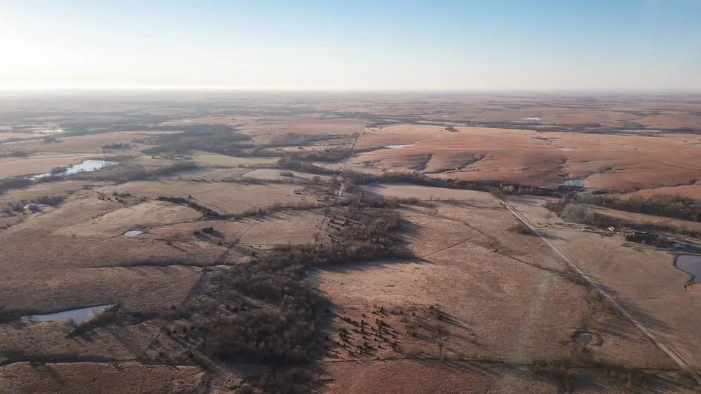 This 156 +/- acre grass property is located in northern Lyon County, just north of Admire, Kansas. It has 105 +/- acres of native prairie grass mixed with cedar trees, plum thickets, and a large wooded draw providing some great habitat for deer, turkeys, and quail. The remaining 51 +/- acres of Class III Kenoma silt loam soil that were previously farmed and are now seeded to tame grass. There are multiple watering ponds as well as good perimeter and cross fencing. Electricity and buried telephone cable are available at the road. There are currently no active grazing leases in place.