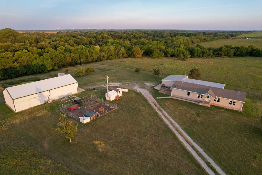 If you are dreaming of country living, with flint hills views, you are going to want to take a look at this opportunity! Located between Allen and Emporia, less than a half mile off pavement, is this 3032 square ft., 3 bedroom, two bathroom home with an attached 3 car garage and additional acreage. An open floor plan welcomes you when you enter and many windows provide excellent views of your land. A concrete patio provides a perfect setting to enjoy a Kansas sunset. The spacious yard includes several Oak trees, walnut trees and even a couple apple trees that are producing fruit.The farmstead includes a 40x60’ shop that is partially finished with insulation, concrete floor, wood burning stove, and a half bath. Additionally, there is ample storage with good lighting in the loft above the finished section, and the remainder is a perfect storage location for hay or equipment. A chain link pen in the farmstead that is perfect for small livestock like goats or sheep. If you have a green thumb you will love the small greenhouse between the house and shop to get seeds started for the raised garden beds.The house is surrounded by native grass that is currently being put up for hay. The meadow is dissected by a seasonal creek providing excellent habitat for wildlife. I personally saw a large covey of quail and deer while photographing the farm. A pond on the west edge of the property can provide adequate water for livestock and/or a place to enjoy an evening of fishing. The property has 4 wire barbed fences on all sides and could easily be grazed if a person chose.This farm has a lot to offer anyone looking to escape the confines of town, yet close enough all of the amenities are a short drive away. Contact the listing agent today to schedule a tour of the property.