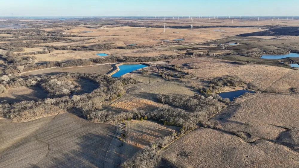 The diverse habitat with abundant food and water creates some of the best whitetail deer, turkey, quail, and waterfowl hunting that Kansas is known for! The property includes two All Season Feeder 1,000 lb deer feeders and two Orion 68 modular deer hunting blinds. The property is located in Kansas Deer Management Unit 14 and the Waterfowl Central Flyway. The 5 acre rock quarry pond also holds a great number of ducks and geese throughout the fall and winter. The property has over 75 +/- feet of elevation changes creating many ideal building site locations. There are many established trails throughout the property as well as a crushed rock gravel driveway installed to the large pond. Electricity is installed onsite, fiber optic cable is at the road, and rural water is less than a half-mile away. The property is located on a well-maintained year-round gravel road and just one mile off K-170 Highway. Mineral rights are intact and will transfer to the buyer at closing. This property truly has so much to offer with the rolling prairie hillsides, mature hardwood timbered draws, creek bottom tillable fields, live creek, a large body of water, and superb hunting! Don't miss out on this opportunity! For additional information, disclosures, or to schedule a showing, contact Trent Siegle at (620) 767-2926.