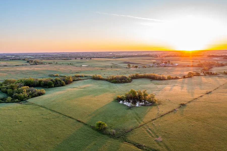 The 40 +/- acres contains 34 +/- acres of virgin prairie grassland and holds a strong stand of new regrowth following the spring burn. The acres are clean and ideal for grazing livestock or a hay meadow. The stand is made up of Big Bluestem, Little Bluestem, Switch, Buffalo, and Gama. 6 +/- acres of timbered draw that branches out in a Y formation following the tributary from west to east throughout. This stream is spring-fed and a year-round water source. There is a creek crossing in the middle of the farm that is rock bottom, allowing for eased passage from north to south. The timber stand is made up of Cottonwood, Elm, Hackberry, Black Walnut and Locust make up the primary.