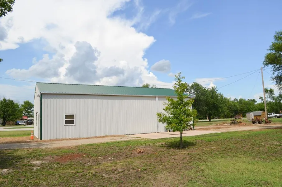 If you're looking for a great place with exceptional hunting and fishing, look no further. This 1,350 square foot lodge sitting on two lots located in the small friendly town of Reading, KS fits the bill. 9,000+ acres of very productive public hunting ground is the backyard playground to this property in the fall and winter. In the summer you have the 7,000 acre Melvern Reservoir within minutes to fulfill all of your fishing and watersports needs. The lodge itself is a very well built and insulated structure. It features 2 walk-doors, several windows, and an oversized garage door big enough to get your boat and all of your gear in out of the weather. The floor plan is wide open with the bathroom in one corner and the living area with the massive wood-burning stove at the other end. The windows and doors feature rough sawn lumber that trim them out to create a very rustic and outdoorsy feeling. The very high ceiling gives ample room for hanging all of your trophy mounts.