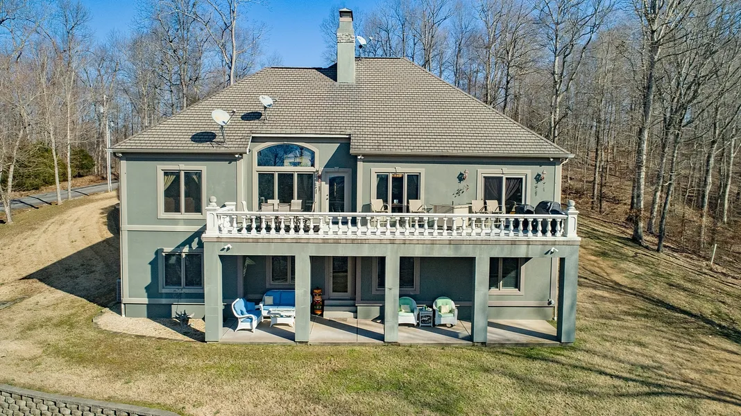 "Jenkins Manor"... a picturesque luxury waterfront home overlooking Lake Barkley. This home offers: 4 bedrooms, 4 1/2 baths, living room with fireplace, formal dining area, office, eat-in kitchen with granite countertops, bonus room, family room downstairs with double sided fireplace, 3 master en-suites (1 on each level), 2 car garage, gorgeous mahogany floors, and a private covered dock. (Water was dredged to 9' in 2010 during summer pool by a previous owner), concrete balcony and sits on 2.44+/- acres. Priced under $145 per sq ft. $649,000.