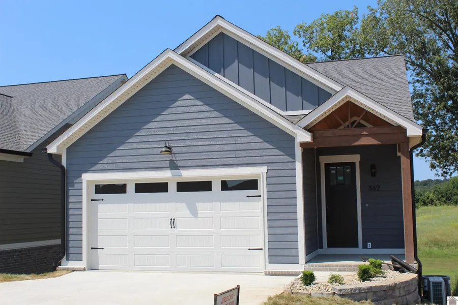 . Immaculate 2025 custom built home located a short walk from lake Barkley, Enjoy year round water views, Go take a dip in the beautiful pool, use the exercise area or just hang out around the Cabana house all included with your HOA, This home features 3 bedrooms 2 1/2 baths, Master bedroom has double vanity and large tiled shower and soaker tub and walk in closet. Open concept floor plan, Custom kitchen with Cafe' appliances, custom cabinets with granite counter tops, Laundry on the main level. Large screened porch over looking the lake. Lower level offers 2 bedrooms 1 bath, family room with walk out to a large covered patio. Buyer to verify square footage, Dock slip and storage units are available (The picture of the finished house is example only of finished home)