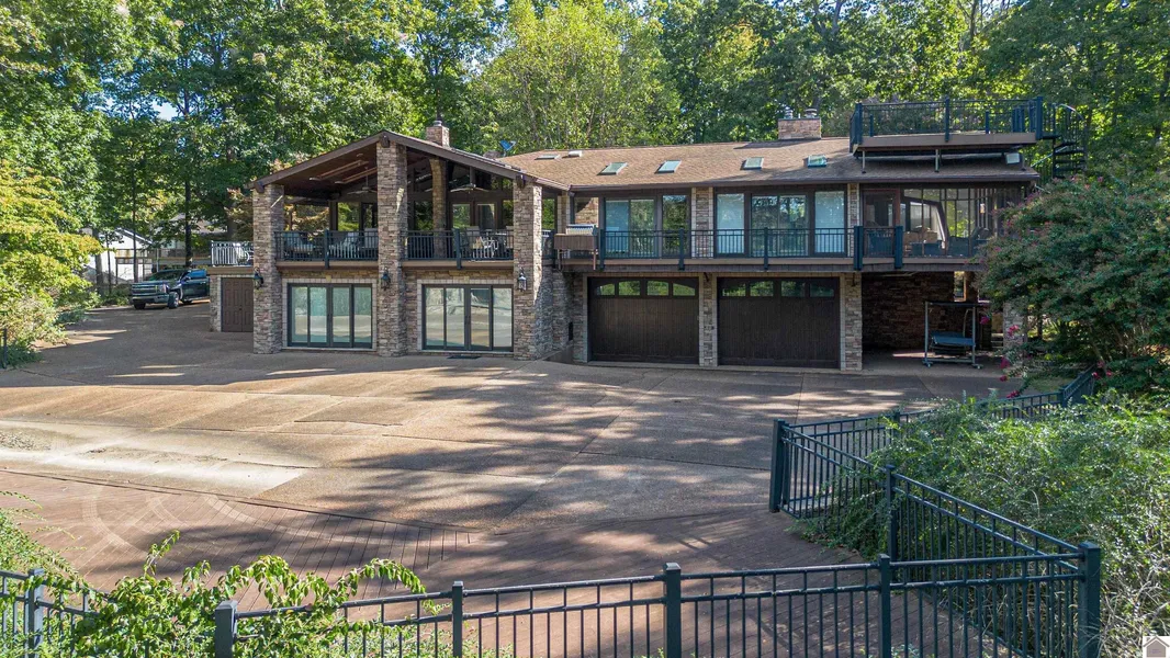 Stunning Waterfront Retreat with One of the Largest Boat Slips on Lake Barkley! Tucked away in a private, peaceful setting, this beautifully crafted home offers the perfect blend of luxury and functionality. Step onto the expansive wraparound deck, complete with a screened porch, upper sun deck, and a striking outdoor fireplace—ideal for entertaining or quiet evenings by the water. Inside, the open-concept design is bathed in natural light and features high-end finishes throughout. The private master suite is a true retreat, while the fully finished basement—with its own family room, kitchenette, bedroom, full bath, and dedicated utility room—makes an ideal in-law suite or guest quarters. Car enthusiasts and hobbyists will love the massive 1,438 sq ft heated and cooled garage, complete with a workshop and attached car wash bay. A cul-de-sac golf cart path leads to the community dock, where you’ll find three slips with lifts included—f some of the largest boat slips on Lake Barkley.