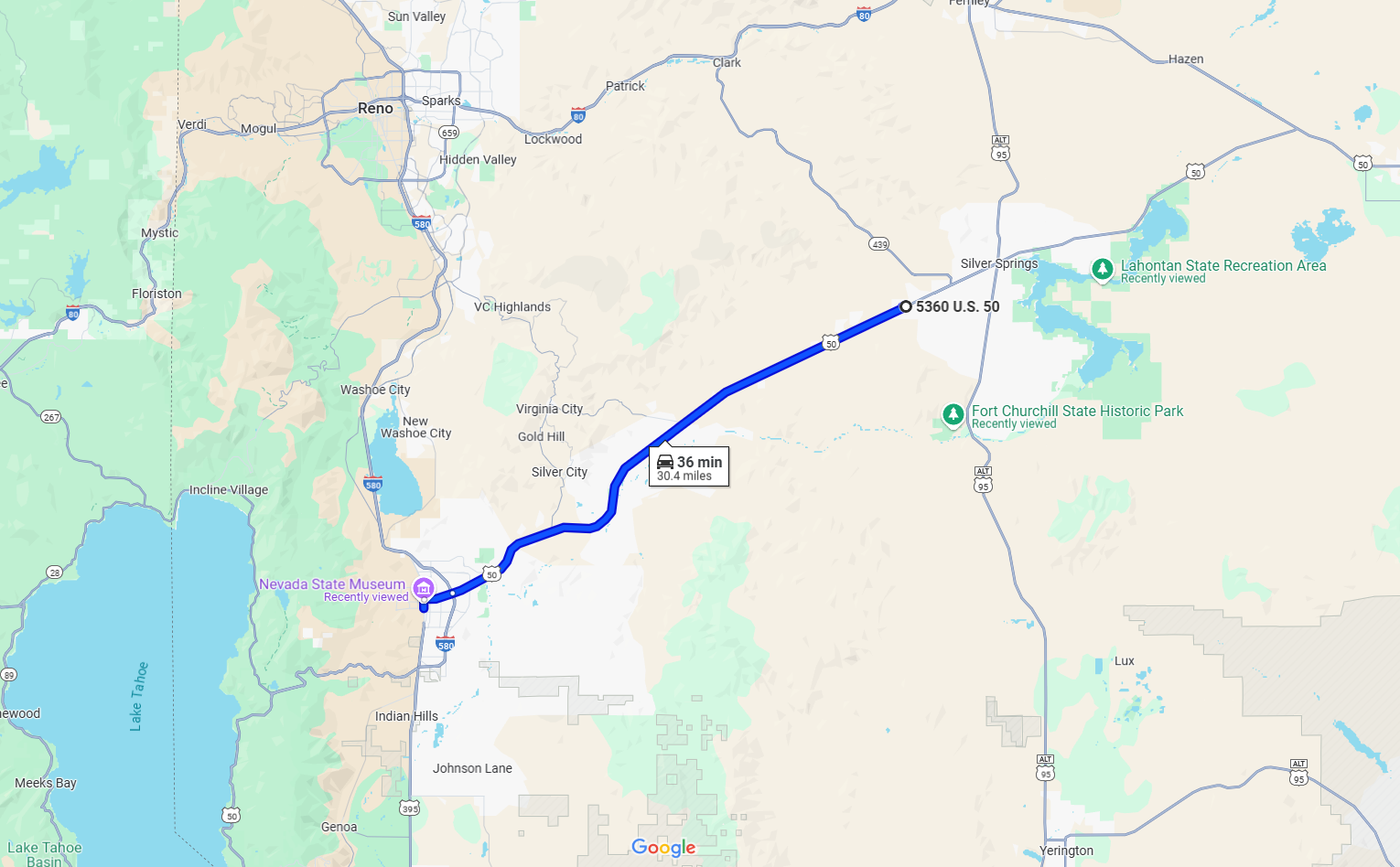 Closest Town/City: Dayton, Nevada - 21 mins (19.0 miles)
