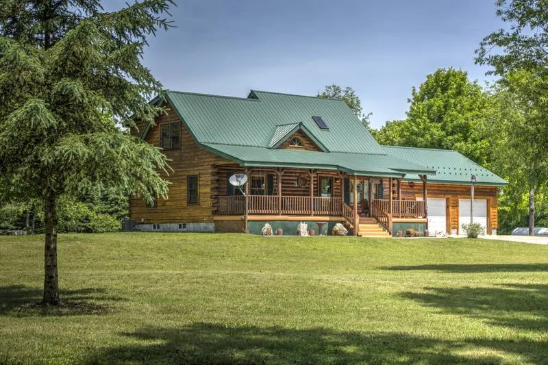 This full log home is meticulously cared for. D logs offer flat interior surfaces for ease of cleaning and decoration. The roughly hewn exposed interior beams are also square cut for ease of display. The interior walls are a combination of wood and drywall which allows for a visual break from all the wood of the exterior walls, this home has three bedrooms and two full baths. The main floor great room features a natural stone fireplace fueled by gas, and flanked by a comfortable sitting area, dining area and open kitchen. An archway leads into a sun room with an additional fireplace and lots of windows for wildlife viewing. The lower level has a large pool table or game room, secured gun room, exercise area and large sunny laundry. The sizable covered front porch will add months to your outdoor living seasons. Unlike some Upper Penninsula structures this home was built with all the ...