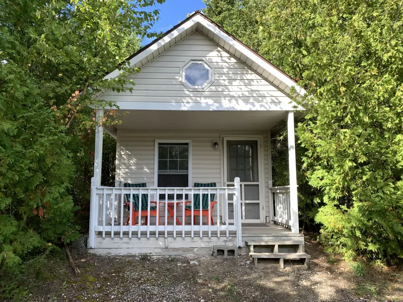 Private & nicely partially cleared 99 x 306 lot that includes a finished 12x12 structure with 6x12 covered porch which can be enjoyed in its present form or be used as a starting point for adding on to, electric is installed & includes a wood burning franklin stove.Quiet access road & gravel drive. Across from the Straits State Park. City water is available, septic system will be required.Within close proximately to city amenities.