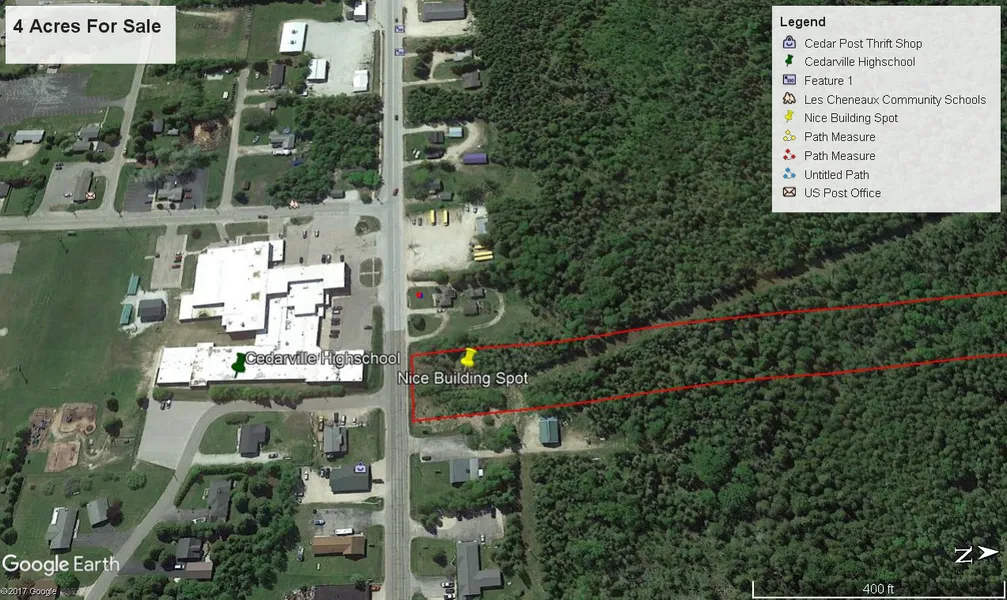 4.15 Acres in a Great Location! Within walking distance to the school and other conveniences and only minutes away from access to the coveted Les Cheneaux Islands for fantastic fishing and boating. There are many possibilities for this piece of land - build your own home or summer retreat, park your camper, or open a business here! Driveway in place.. Building site in the back of property.. Zoning in place for residential and/or commercial land use. Call today.