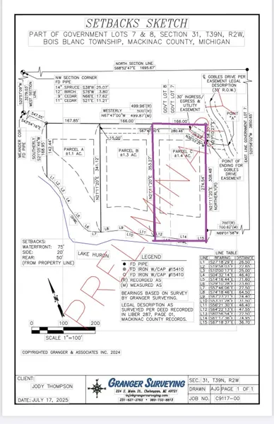 Secluded 1.4 acres and 167' of waterfront on Lake Huron await! This lot is peppered with gorgeous cedar trees and has a fantastic view of the Straits of Mackinac and the bridge from the beach! Gobles drive is a private easement to lots. Electric power nearby and a two track at back of lot for access. Just add drive and clearing to enjoy! Purchase parcels A-C for $369,900. Seller is a licensed real estate agent in the State of Michigan.