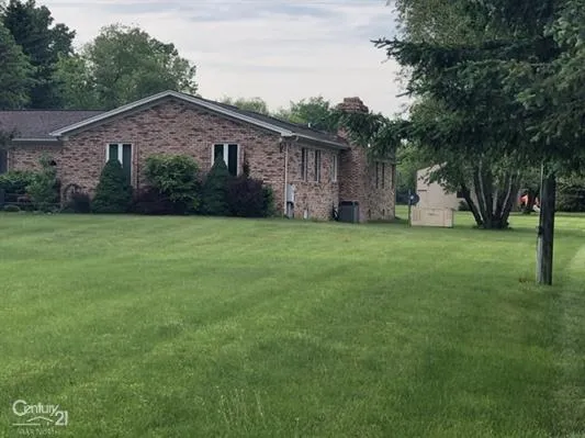 This sunshiny open concept home is perfectly located between Armada and Romeo on a paved road with natural gas & features 2 master bedroom suites. The newer master wing offers a huge walk-in closet and a bathroom with a jetted tub, a huge ceramic steam shower, double vanities, kitchen is newly remodeled & features white cabinets, granite counter tops & stunning ceramic floors which flow throughout the kitchen. Dining room front & side entries, laundry/mudroom area