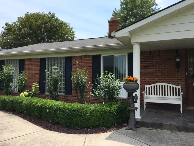 Beautiful brick ranch, nicely landscaped, sitting on 3.07 acres of land, 3 bedrooms, 3 baths, (6) car garages, (3) attached, (3) detached, fully finished basement with kitchen, kitchen with stainless steel appliances, granite counter tops, fully covered patio, large dining room, great room with bay window. Master bath with jetted tub, whole house has back up gas generator, water softener, lots of fruit trees, vegetable garden and chicken farm area, nice curb appeal. Full updated house is ready to move in. Must See.