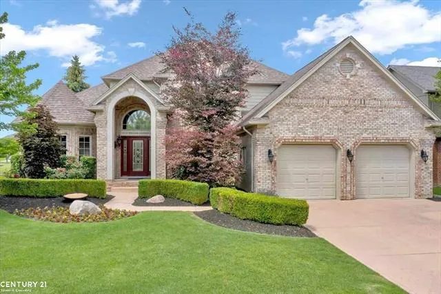 This move-in-ready former builders' model is the perfect place to call home! Need two offices? No Problem! Prefer one and a formal dining room? That works too. The main floor Master bedroom features walk in closet, spectacular bath with double sinks, jacuzzi tub and shower. The upstairs boasts three more spacious bedrooms and full bath. Many upgrades such hardwood floors, three-way gas fireplace and intercom/central radio system and local alarm. Kitchen provides plenty of Lafata cherry cabinets, granite counters, island with cooktop and double ovens. Double bay windows in nook overlook the fenced yard with mature trees, stamped concrete patio, pond/waterfall and no neighbors in back! Newer roof, furnace, air conditioning, hot water heater, sump pump and door wall. Much less traffic because English Garden isn't a straight thoroughfare like Shinnecock and Country Club (neighboring streets). Oversized 2.5 car garage fits full-size SUVs. Utica Schools and close to Metro Parks.