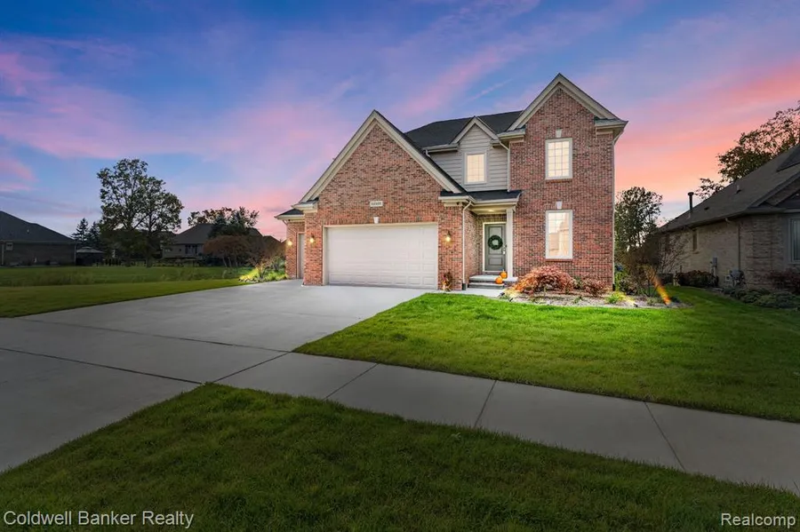 Golden opportunity awaits on this 1/2 acre lot! Avoid the expense and hassle of building in this one-year, young home. Upgrades and landscape are done! Neutral palette waiting for your personal touches. Rich, sea of hardwood flows throughout the main level. There is an abundance of natural light to uplift your mood daily. Inviting foyer leads to a separate dining area or study, detailed with crown molding and wainscoting. Classic, spacious white kitchen with stainless steel appliances and walk in pantry. Oversized island with exquisite stone for your cooking pleasure. The kitchen opens to the great room with a cozy gas fireplace. Stylish staircase with upgraded carpet leads to 4 generous sized bedrooms and 2 full baths. Primary suite has a dimensional tray ceiling and ensuite with spa like setting. Spacious dual vanities, tub and separate shower. Huge walk-in primary closet. Convenient s...