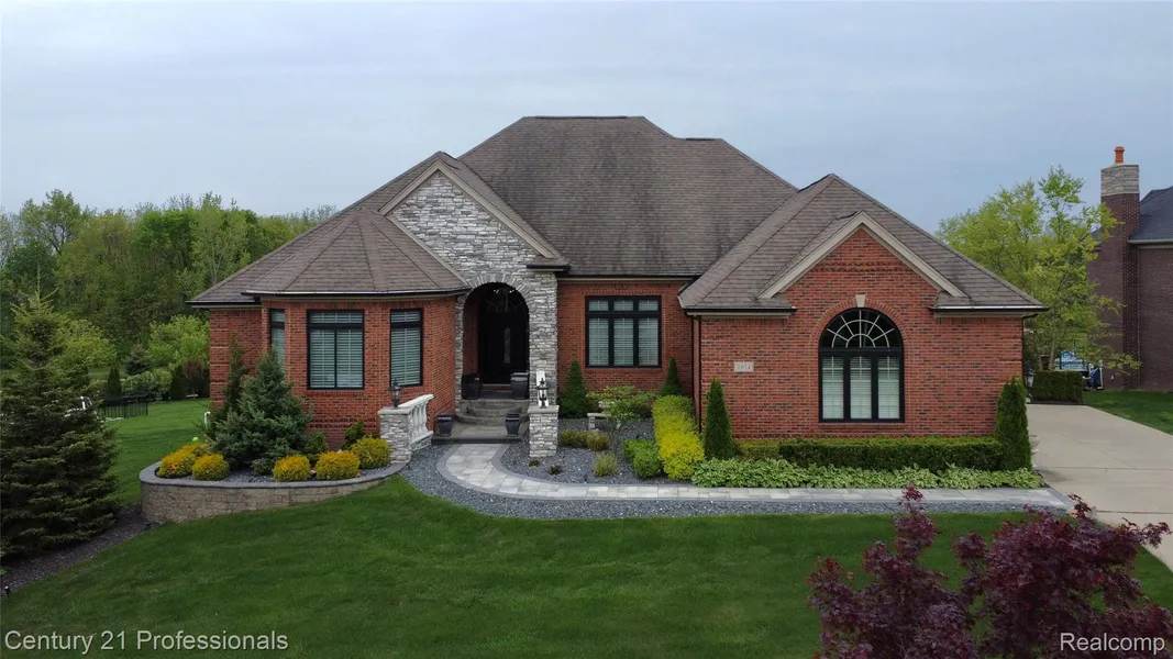 This beautiful 3 bed 3 1/2 bath ranch home with 3 car garage is situated on a beautiful setting on almost 1 acre of property - similar to a castle with all the bells and whistles and even more! The outside of this custom home comes with a combination of brick and stone. The interior comes complete with a mix of beautiful marble and cherry wood floors throughout the main level, granite countertops in the respective rooms, and beautiful custom woodwork that includes oversized base molding, triple crown moldings and wainscoting can be found throughout. The soaring ceilings give you the custom feel to the overall home with dimensional ceilings in the many rooms. The dual kitchens, main and lower level, have ample spaces with the premium design of LaFata featuring soft close, roll outs, drawer banks and each has stainless steel appliances. The exterior of the home features dual decks along with natural 2 fireplaces with an additional aggregate concrete patio off the lower level fireplace. With a separate kitchen, a great room with a fireplace, a full finished bar, an additional potential bedroom and full bath the lower walkout level is its own living area. The backyard is an oasis and has ample space for an additional pool area and so much more!
