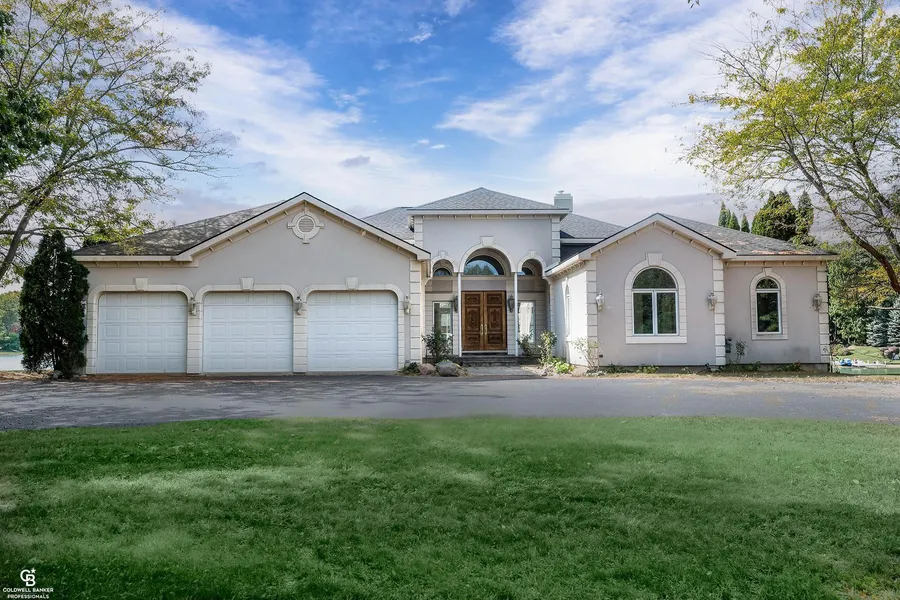 Beautiful contemporary home on Lake Angela - breathtaking views - a chef's kitchen with granite counters, gas fireplace, double ovens, built-in cook top, microwave, sub zero refrigerator, multiple prep areas, dishwasher, deep fryer, cabinets have Swarovski crystal knobs, office off of kitchen overlooking water - great room opens to 1,000+ square foot deck with inlay design - primary bedroom has gas fireplace, beautiful views, access to deck and 2 walk in closets, one has a cedar closet within - primary bath has double sinks, walk in shower, private toilet & bidet - second bath has double sinks - first floor laundry has sink, dog wash and built in ironing board - lower level has 3 door walls to 1,900+ square foot deck built over the lake plus large cedar closet, tornado shelter, 2 furnaces, 2 hot water heaters, a room prepped for bath - heated 3 car garage - circle drive - association fee...