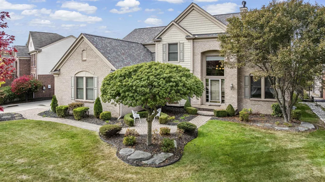 Offering this beautifully maintained colonial in the sought-after Villa Fontana of Sterling Heights. Featuring 9'ceilings on the main level, hardwood flooring, stone counters and beautiful gunmetal appliances-all included. Enjoy piece of mind with a new roof and furnace (22), plus an updated primary shower (23). The professionally finished basement includes a full bathroom and a wet bar, ideal for entertaining. Upstairs the massive primary suite offers an impressive WIC and bathroom. Outside, the gorgeous landscaping and large paver patio allow for indoor/outdoor living. Enjoy one of the largest lots in Villa Fontana at .3 acres and a garage that boasts 603 sq ft making it approximately a 3 car garage. This home offers 3151 sq ft of living space with approximately 1100 sq ft of finished basement living. The furniture in the home is available along with some garage items including the new riding mower and snow blower (all negotiable). Sale contingent on seller closing on new home.