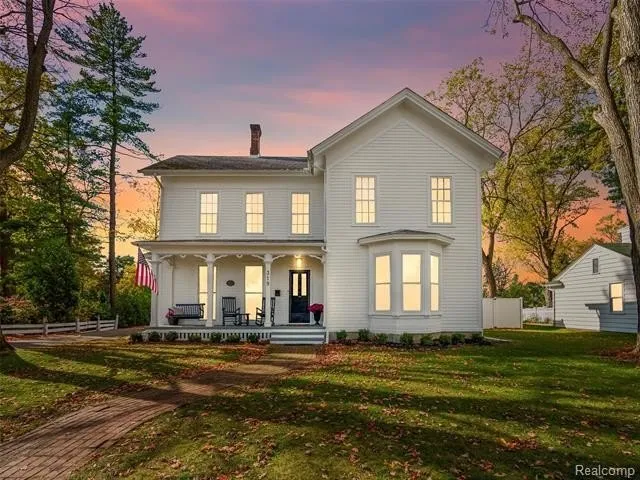 This Historic 1871 estate on OVER a half acre has been updated tastefully throughout, while maintaining all of the original charm and character that must be seen to appreciate!! Updates of the home include CENTRAL AIR (space pak cooling), new siding, exterior and interior paint, new carpet, half bath remodel, newer/high-end appliances (Sub-Zero fridge/Wolf stove), updated lighting and fixtures. The in-law suite has a remodeled kitchen, all new appliances, and a new sliding glass door leading to the back porch with sunset views. Main house (3150 square ft) includes 4/5 bedrooms and 2.5 baths, and over 3100 sq. ft. In-law suite boasts over 1200 sq. ft. and 2br/1ba with newer furnace and central air as well. All in all, 6 bedrooms, 3.5 baths, and 4400 sq. ft. of total living space! Large backyard area with new privacy fence immediately behind home, PLUS huge backyard beyond with firepit. This beauty is located in right in the quaint village of Romeo and is within walking distance to all of the local shops, restaurants, and schools!!