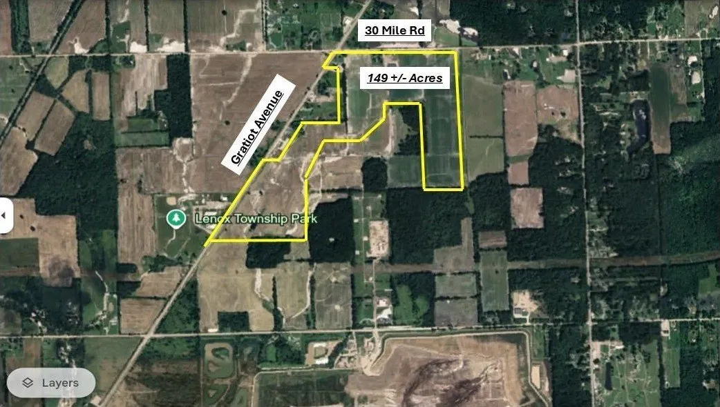 Fantastic development opportunity with Prime Gratiot frontage and 30 Mile Rd frontage as well. This property consists of 149 + acres. There is a total of 8 parcels with 3 farmhouses which are 3 bedrooms, 1 bath, with basements, one is approximately 1200 sq ft and the other is approximately 1600 sq ft. The third is possibly a tear down. There is also a huge barn which is approximately 60'x100' with restroom facilities. This property is located across from the Lenox Twp Office and Park. Water, sewer, and gas are accessible on Gratiot. Property is located within the Master Plan for the Future Town Center, with Mixed use. Check Township Master Plan.