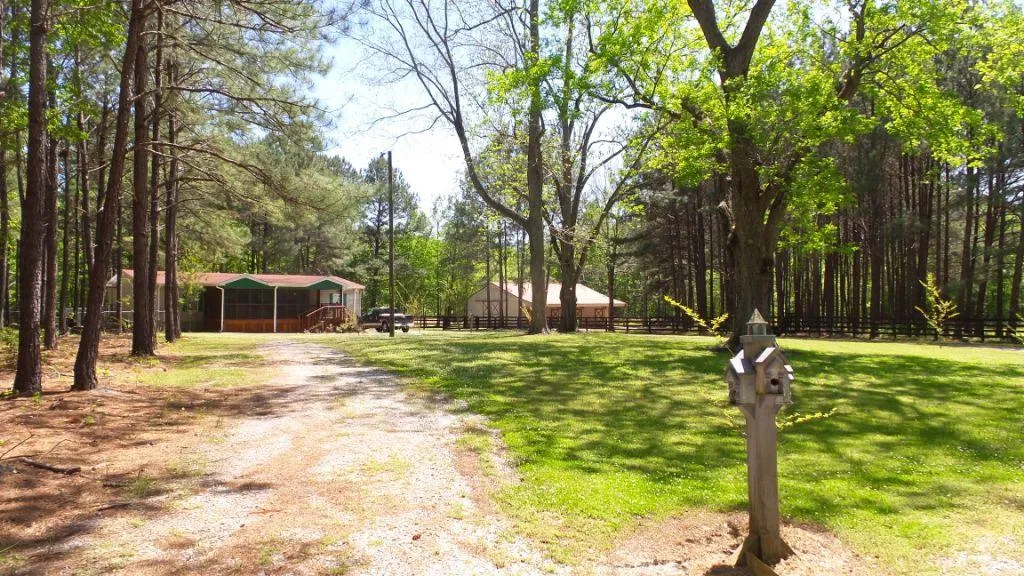 Home with 3BR, 2BA, LR, DR, Den, master with garden tub & screened front porch with swing. Located on beautiful wood front fence, with (3) points of entrance & 1 mile of paved frontage road access.