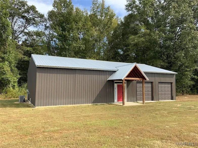 Built in 2023, this barndominium-style home offers approximately 2,400 square feet under roof, with about 1,440 square feet of heated and cooled living space. The home includes 2 bedrooms and 1 bathroom, with potential to add a second bathroom under the existing roofline. Situated on approximately 8 acres (to be surveyed), the property is partially fenced and features a creek along the back boundary. The garage area includes two garage doors and extra space suitable for storage, equipment, or recreational use. The structure features spray foam insulation to enhance energy efficiency and sound reduction. Located in the Franklin Community near Tuskegee, this property offers convenient access to Interstate 85. If schools are important, please verify.