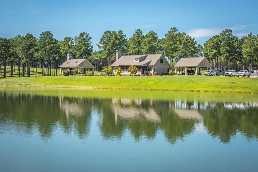 The guest house is 1800 sq/ft with 3 bedrooms 2 baths and was built in 2014. The guest house sits just feet from the lake and has an incredible view from the porch. There is also a separate building located nearby that features a locker room, kitchen, steam room, and bunk rooms for extra guest. This building is perfectly setup for hunter visiting the property with everything they need including a Polaris Ranger Crew sitting outside under the covered parking area.