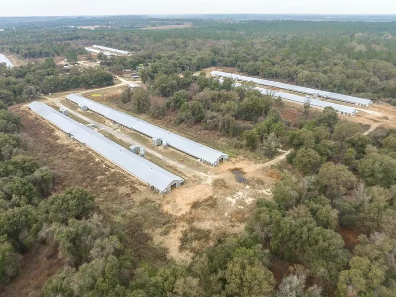 Short sale/Pre-foreclosure for 64.19 acres land with 4 breeder chicken houses size 40x600 with 1 single ranch house and 2 mobile home on the property. It has 3 septic tanks, 3 wells and 2 generators. The farm currently has no chicken but all the 4 poultry houses were working on June 2023. You can be do anything with the flat land and all opportunity with great price for new owner. It has 1781' frontage of Loblolly Rd