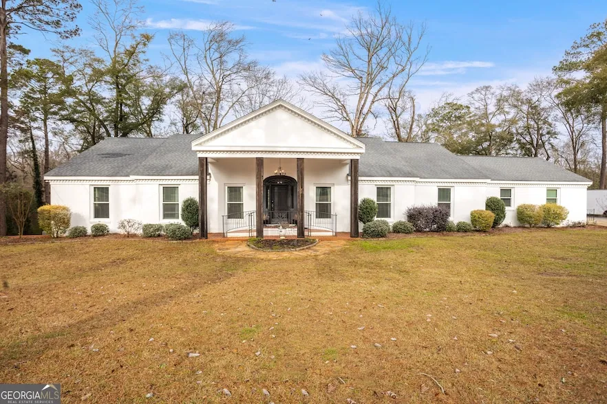 Step into this magnificent large brick home, offering a serene and private setting in Montezuma, Georgia. Designed for comfort and elegance, this home provides ample living space, luxurious finishes, and versatile living arrangements. The main floor features a grand and welcoming entrance showcasing timeless charm. A spacious formal dining area provides the perfect space for entertaining. The gourmet kitchen boasts granite countertops, bar-top seating, stainless steel appliances, and abundant cabinetry and counter space. Adjacent to the kitchen, the cozy living area features a gas fireplace with a brick surround, built-in shelving, storage cabinets, and expansive windows that flood the space with natural light. A private office or study is tucked away off the kitchen, offering a quiet workspace. The main floor also includes three generously sized bedrooms, with two possible owner's suites, each offering private baths with separate tubs and showers. The third bedroom has a private entrance to the hall bath.Ample closet and storage space can be found throughout the home. A well-equipped laundry room includes dedicated cabinets and counter space for organization. Upstairs, an expansive bedroom or additional living space comes complete with a private bath. The basement provides a fully functional separate living space with a private entrance and covered patio. It includes a complete kitchen, two distinct living areas, a bedroom with a private bath, and is ideal for guest quarters, multi-generational living, or rental income potential. Outdoor living is truly special with an expansive covered porch, perfect for relaxing and taking in the natural surroundings.This quintessential Southern retreat offers tranquility and charm, seamlessly blending luxury with functionality. Don't miss your chance to own this beautiful Southern retreat!