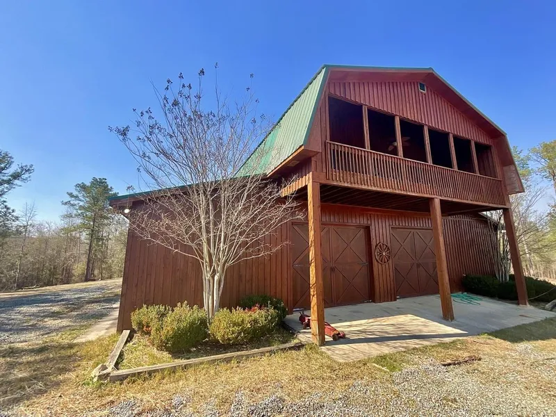 * The Barn offers: 3br/2ba 1710 sq' upstairs living area with full kitchen, laundry room, front and back covered porches. 1br/1ba 540 sq' downstairs living area with kitchen. 1710 sq' downstairs enclosed barn area with half bath, two electric garage doors, and back door. 540 sq' covered shelter on side of barn opposite of living area. Appliances and most furnishings included. Central AC/heat* Land consists of rolling topography, cut-over and timber thinned areas, pine/hardwood mix, hardwood bottomland, creeks, and open field areas that could be converted to pastureland
