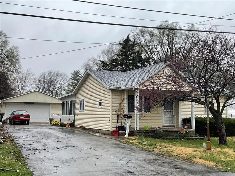 What a deal! Ranch with 2 bedrooms, hardwood flooring under carpet ( look in hall closet ), walk in shower, eat in kitchen, utility room, and gorgeous sunporch built by 4 seasons. Enjoy the enormous garage with pull down ladder to extra storage above the garage and the BIG shed in the yard. Nice roof and siding.