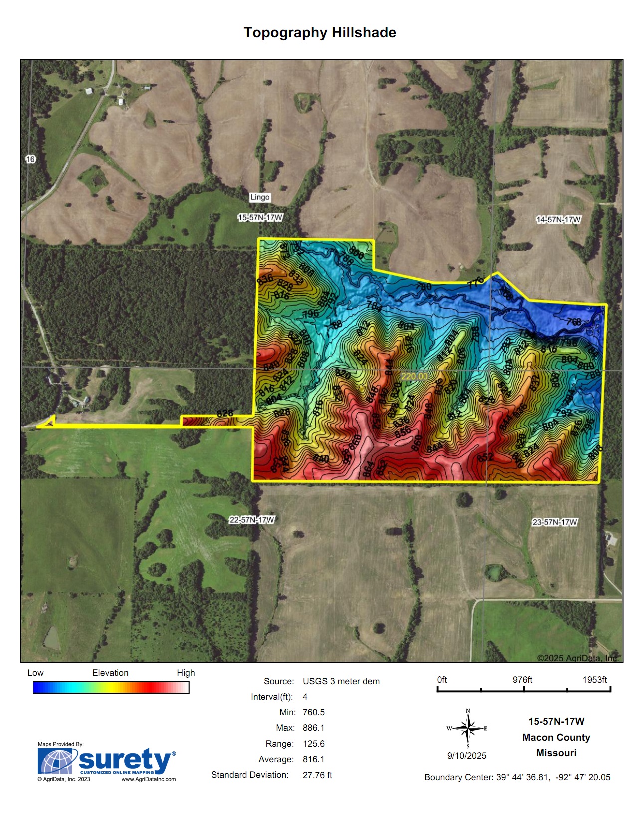 Search for detailed parcel information including; Elevation & Vegetation Maps, Ownership Information, Detailed Parcel Information, Crop History Map, Soil Survey Productivity Data, and more.
